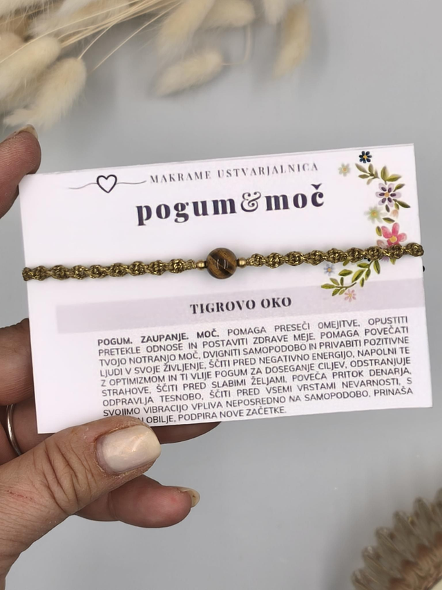 Zapestnica je narejena iz naravnega kristala Tigrovo oko, ki ti pomaga preseči omejitve, opustiti pretekle odnose in postaviti zdrave meje.