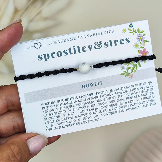 Zapestnica iz naravnega kristala Howlit ti prinaša notranji mir, sprostitev in zmanjšuje stres. Pomaga pri nespečnosti in prinaša občutek lahkotnosti skozi ves dan.